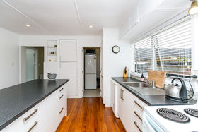 This immaculately presented, light and airy, three bedroom home is sited on a completely fenced and flat 850sqm section and has easy drive-on access. With a single garage plus double carport and two good sized garden sheds, this home has been renovated and boasts a modern kitchen and bathroom. The open plan kitchen and living area is an entertainer's delight and a centrally located wood burner will ensure your family is cosy during the winter months. A large decking area overlooks the back garden complete with large lawn area and raised vegetable beds. Situated in the popular suburb of Hurdon and within easy walking distance to Frankley School, Kahikatea Kindergarten, Francis Douglas College and the new Westown Complex means this property is ideally suited for families although the low maintenance construction may also appeal to a wide range of buyers. Call Victoria Lewis today to view this property.