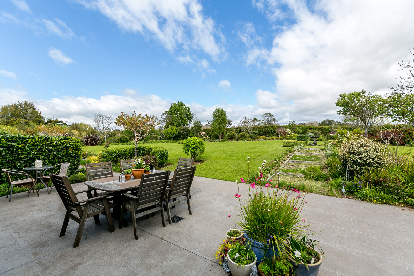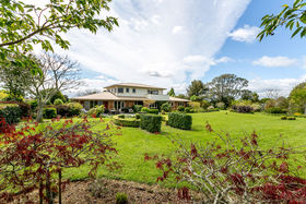 There is plenty of room for family and guests with a fully self-contained flat. Set on 18,780m2 (approximately 4 acres) and 5 car garaging.