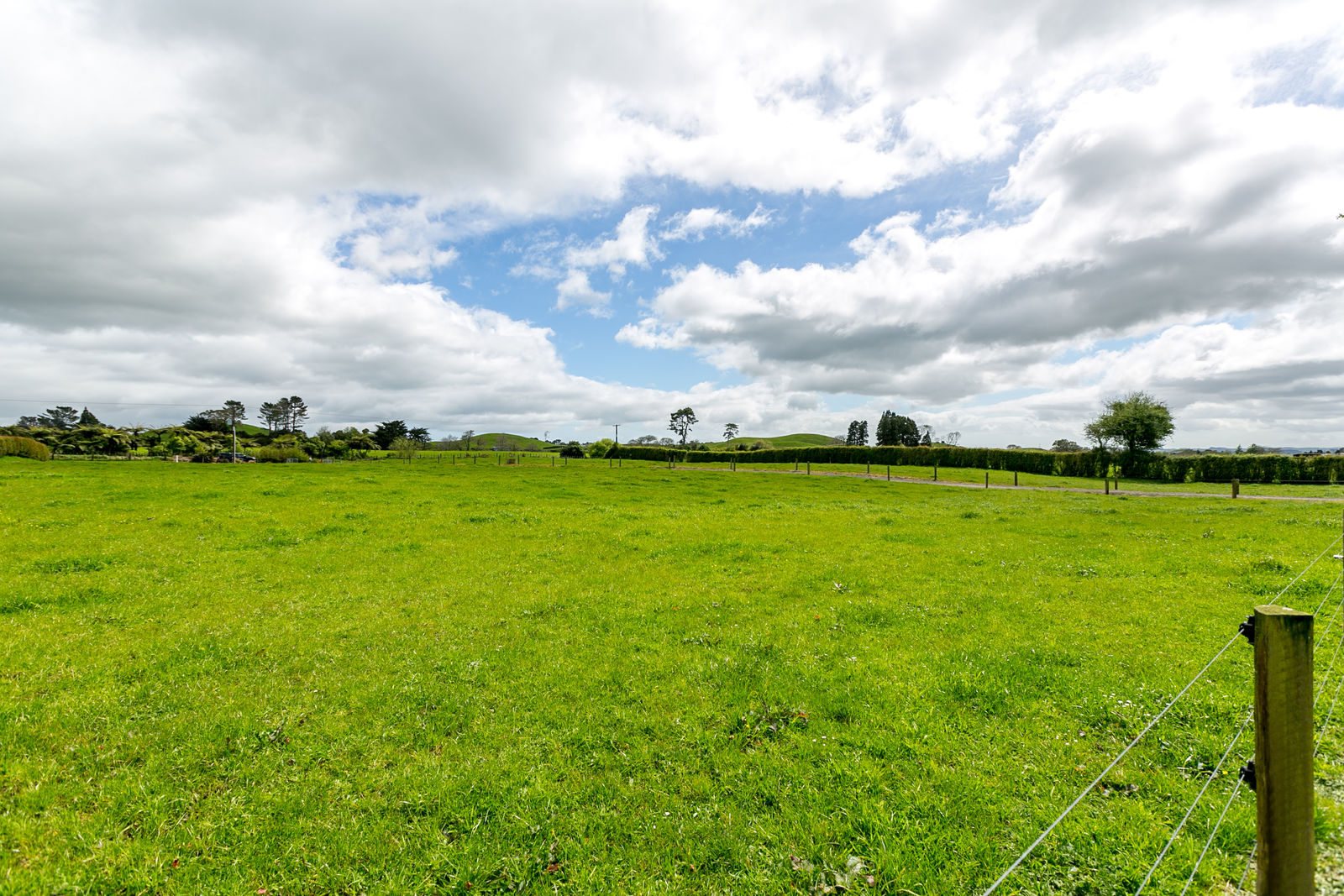 The land is flat and fertile and well looked after with neatly fenced paddocks.