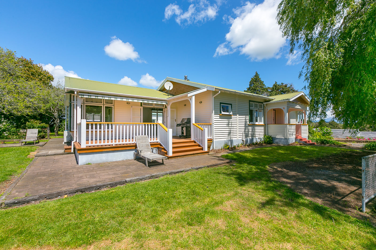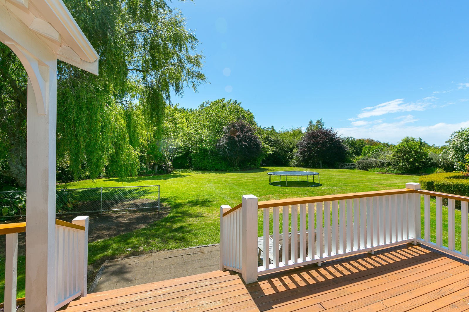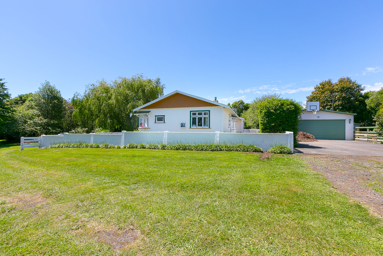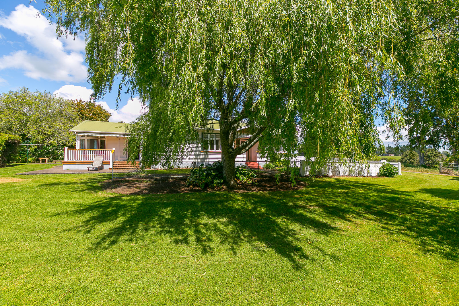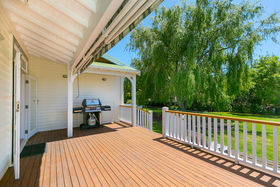 Bask on the huge sun drenched deck in a stunning park like setting with mature trees, a fire pit, several little paddocks and a generously proportioned double garage with workshop space.