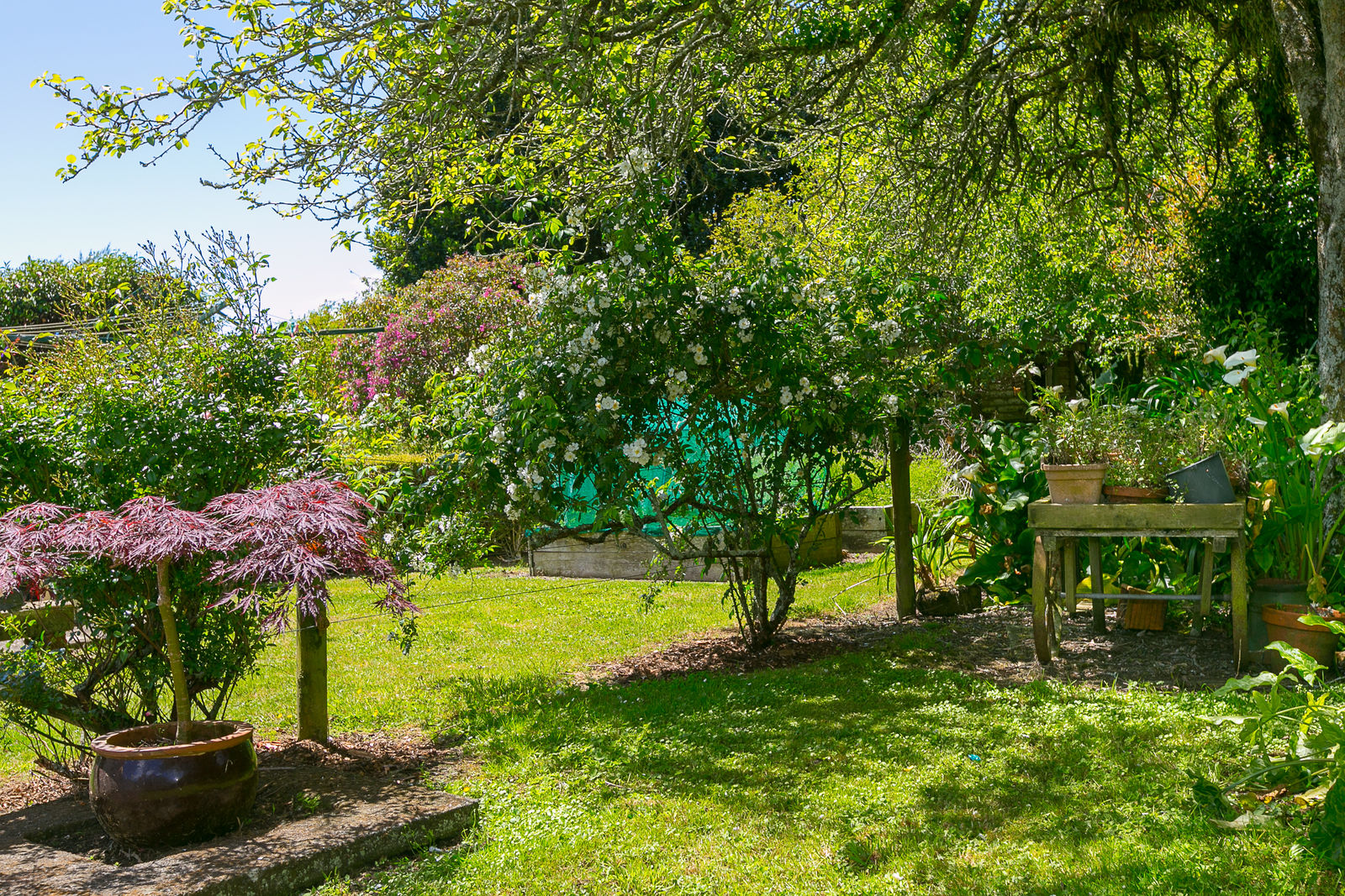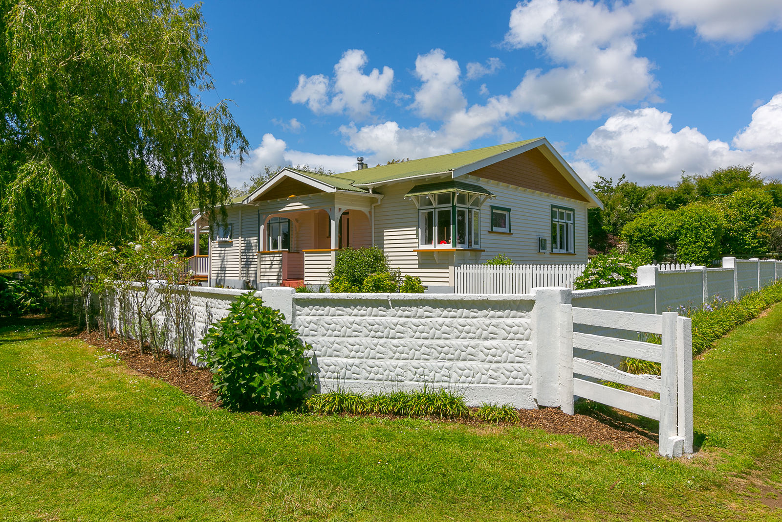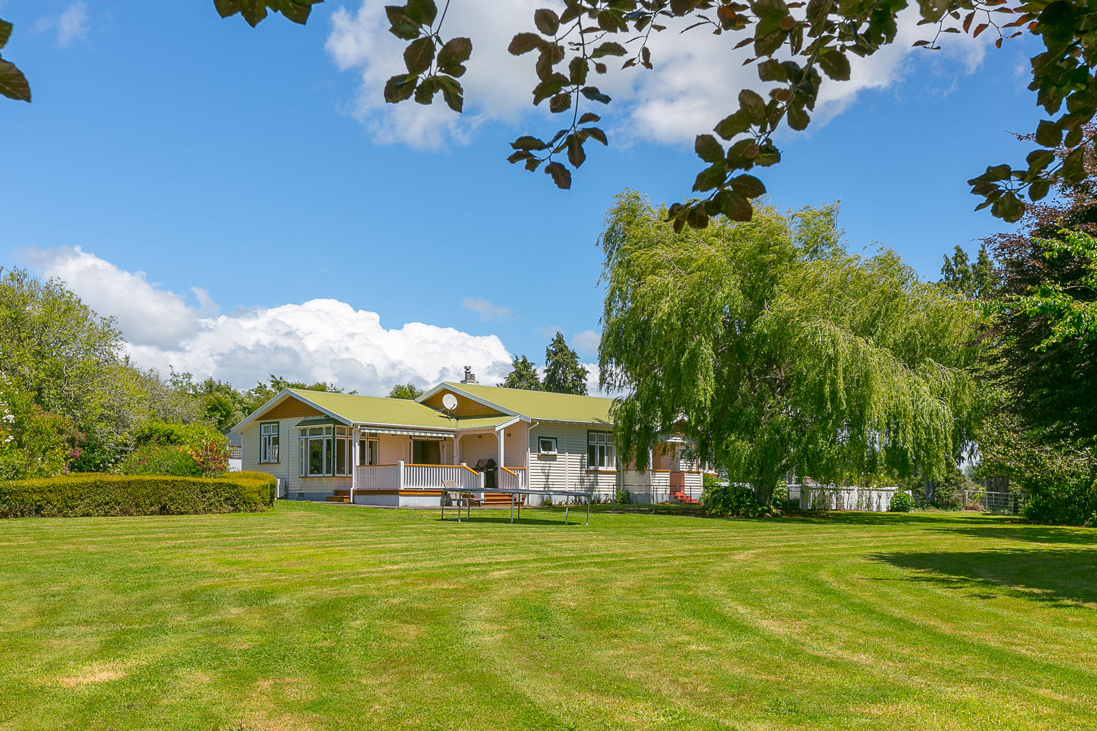 Bask on the huge sun drenched deck in a stunning park like setting with mature trees, a fire pit, several little paddocks and a generously proportioned double garage with workshop space.