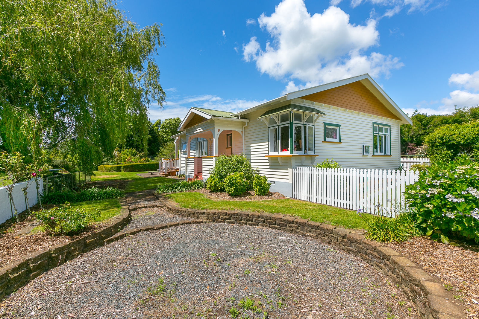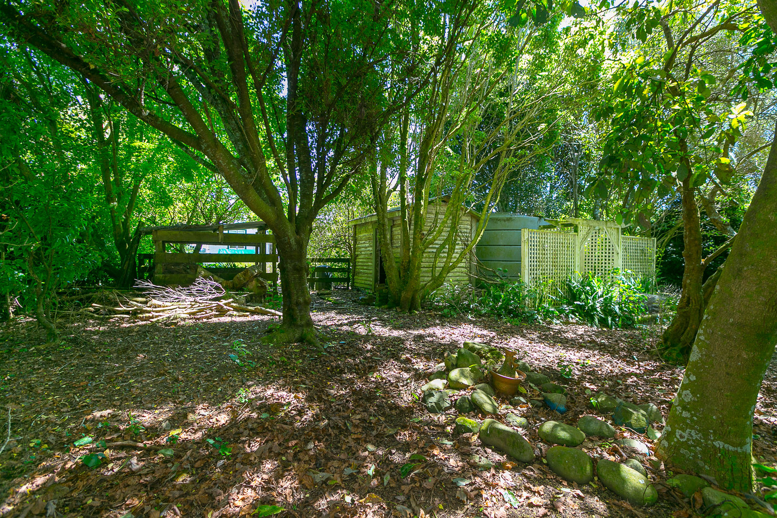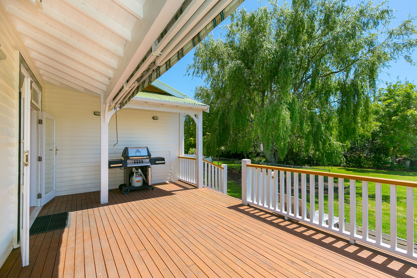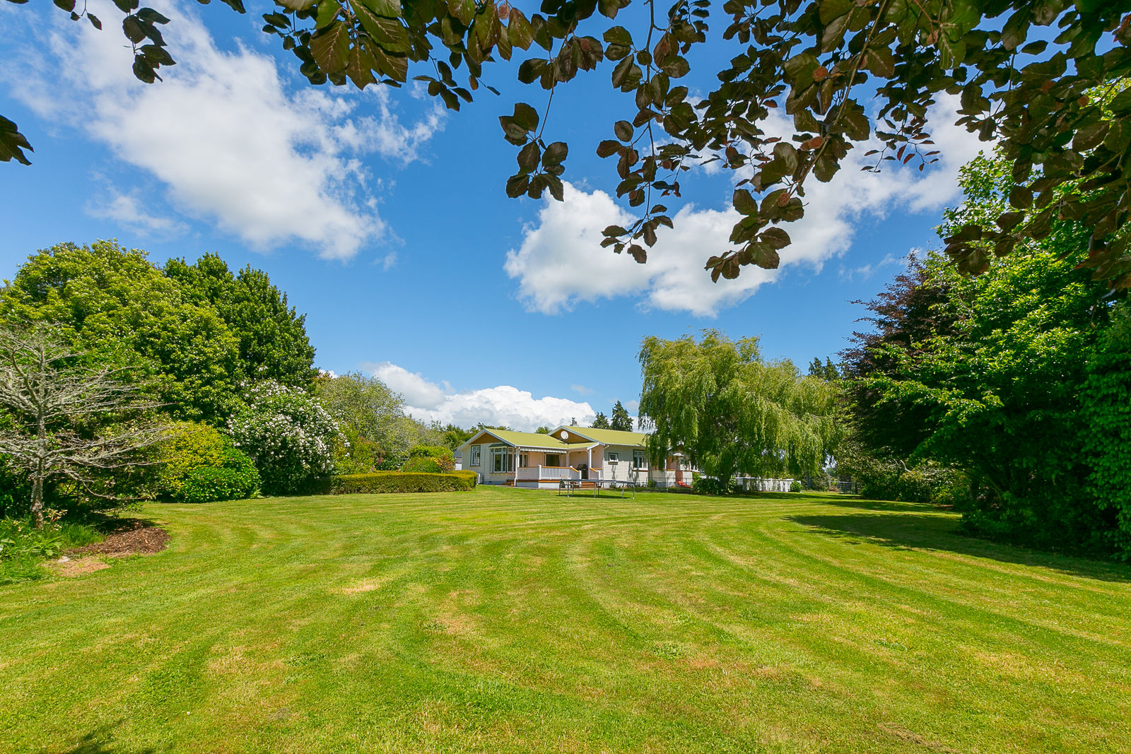 Bask on the huge sun drenched deck in a stunning park like setting with mature trees, a fire pit, several little paddocks and a generously proportioned double garage with workshop space.
