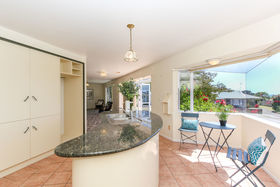 North facing and elevated for all day sun it has open plan kitchen and dining, separate living and a cosy conservatory to enjoy the afternoon sun. It has three double bedrooms, an office, large family bathroom and separate toilet. The master bedroom is upstairs and has an en suite.