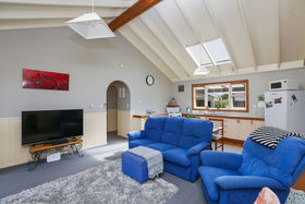 Inside, this 100m2 home boasts three bedrooms, one bathroom and a highly functional open plan kitchen/living area. A heatpump guarantees year-round comfort, while the separate laundry is an added bonus.