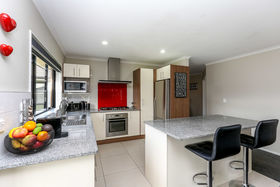 It's free-flowing design is sunbathed in natural light with open plan kitchen, dining and family living providing easy access to the fully fenced backyard. The kitchen is at the hub of the home and features a five burner gas hob, electric oven, granite counter tops and an island bench.