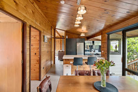 This home was built in the 1980s features a combined dining and kitchen with a separate lounge. The kitchen has plenty of space, induction cooktop, and a breakfast bar, and combines with the dining room for a great gathering spot. Slide the door open for access to the deck to enjoy some summer breezes. The separate lounge is kept cosy with a brand new wood burner fire perfect for chilly winters! The lounge also opens up to a sun packed deck. The three bedrooms host built in double wardrobes and lots of natural light. The bathroom has a separate shower and a separate toilet and laundry adds to its practical nature.
