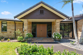 Beautifully crafted construction, built of kiln dried Hinuera stone, this home boasts generous open plan living, which flows onto expansive decking. Fantastic 4 plus car Garaging. Landscaped gardens, and many fruit trees, tack shed and garden shed.