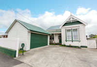 The interior is a mix of original villa features and modern practicality. Featuring an open plan kitchen/dining/lounge area with a fireplace & heating. Four bedrooms and two bathrooms, three toilets, office, double garage and all located within an easy walk to the shops, cafes, Yarrow Stadium and the Taranaki Base Hospital.